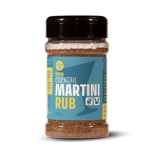 Entdecken Sie die Eleganz des Rub im Martini Cocktail, der durch die Botanicals von BUGIN Gin verfeinert wird. Eine aromatische Symphonie, ideal für rotes Fleisch und Schalentiere, mit der Sie jeden Bissen in ein Gourmet-Erlebnis verwandeln und sich dabei immer auf die Essenz des BBQ konzentrieren. Die Mischung aus Salz, Gewürzen und Kräutern bringt Sie zurück zum Duft und Geschmack eines der berühmtesten Cocktails der Welt, dem Martini Cocktail, für jede Art der Zubereitung: auf dem Grill, im Ofen oder in der Pfanne.