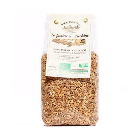 Geperlter Bio-Dinkel, hergestellt und verpackt in Val d’Orcia von der Firma Mulino Val d’Orcia.Dinkel ist das kalorienärmste Getreide und eignet sich dank seines hohen Proteingehalts (15%) in Kombination mit Hülsenfrüchten für köstliche und nicht zu kalorienreiche Eintopfgerichte. Außerdem ist er reich an Ballaststoffen, die das Hungergefühl bremsen und die Darmtätigkeit regulieren. Es muss nicht eingeweicht werden und ist schnell gekocht.