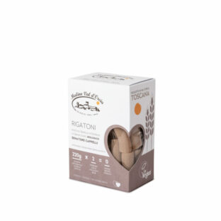 -Organic spelt pasta, stone-ground flour, bronze dies. Produced with stone-ground organic flours in the farm mill, bronze-drawn and dried slowly at low temperature, Mulino Val d’Orcia pasta is an artisanal, extremely porous product with a distinctive amber color and unmistakable flavor! Our pasta made with stone-ground spelt flour has a higher fiber and mineral content than industrial pasta and retains its lipid-vitamin properties, is a more balanced pasta and has a lower glycemic index. About 18 hours of average drying time at a temperature of about 38°/42°