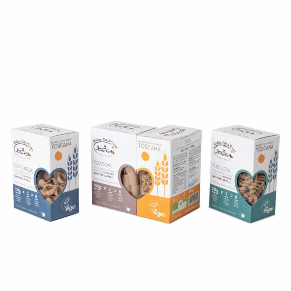 INCLUDES: Gigli for 2 (220g), Conchiglie for 2 (220g), Rigatoni for 2 (220g), Fusilloni for 2 (220g). A set of formats in small 220g boxes, designed for no more clutter of leftovers in the pantry, for an unusual gift and, why not, for voluptuous daily consumption. Here in the single 220g version: we present our Lilies for two. INGREDIENTS: organic Senatore Cappelli durum wheat whole wheat semolina, water. NUTRITIONAL VALUES (average per 100g): Energy 1382kJ/330 Kcal, Fatty acids 2.2 of which saturated g 0.22 g, Carbohydrates 64.8 g of which sugars 3.0 g, Fiber 7.1 g, Protein 13.3 g Salt 0.02g. Shelf life: 18 months. SHORT ROW: Average distance between the harvesting field and the mill-bakery: 10 km