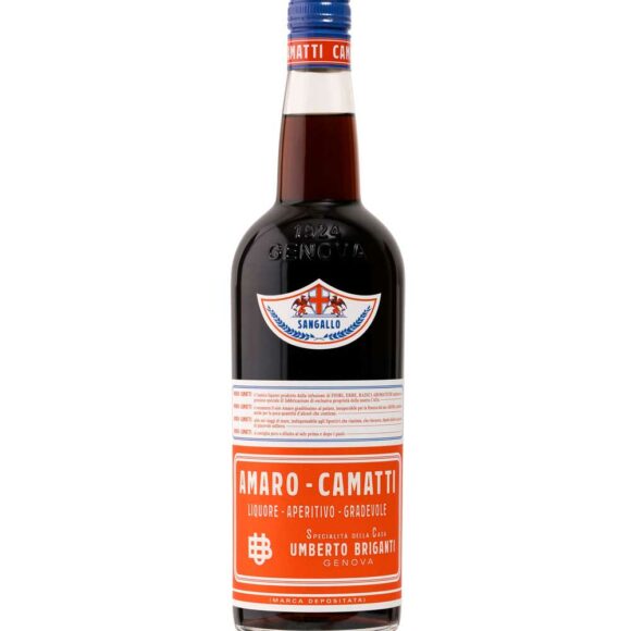 – Amaro Camatti è l’antico liquore, grande specialità genovese, prodotto dall’infusione e distillazioni di fiori, erbe, radici aromatiche e toniche mediante un processo speciale di fabbricazione, cui l’antica formula originale viene ancora oggi custodita segretamente. Graditissimo al palato, insuperabile per la finezza del suo aroma, preferito anche per la sua poca quantità di alcool che contiene. Amaro Camatti è il liquore preferito dalle famiglie che ne apprezzano il valore e abitualmente lo consumano dopo i pasti. Gradazione:  20,00%. Capacità: 100cl.