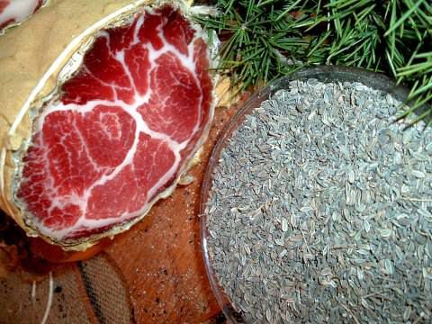 È la parte del collo del suino, una volta salato e speziato per qualche giorno viene messo a stagionare. Il finocchio selvatico in semi insieme ad altre spezie gli conferisce un gusto finale gradevolissimo e delicato.