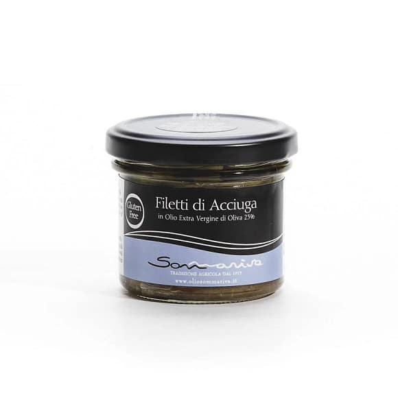 Filetti di acciuga in olio extravergine di oliva in vasetto di vetro. La parte più prelibata delle acciughe, ecco cosa troverete nei nostri Filetti di Acciuga. All’incredibile qualità del pesce si aggiunge la conservazione in delicato olio extravergine di oliva Sommariva per regalarvi un prodotto ricercato e saporito, tipico della tradizione ligure e italiana. I Filetti d’acciuga sott’olio firmati Sommariva sono ottimi da gustare su una semplice fetta di pane imburrato o da aggiungere ai vostri piatti speciali. Li trovate in vasetto di vetro, perfetto per conservarli al meglio. Vasetto da 110g.