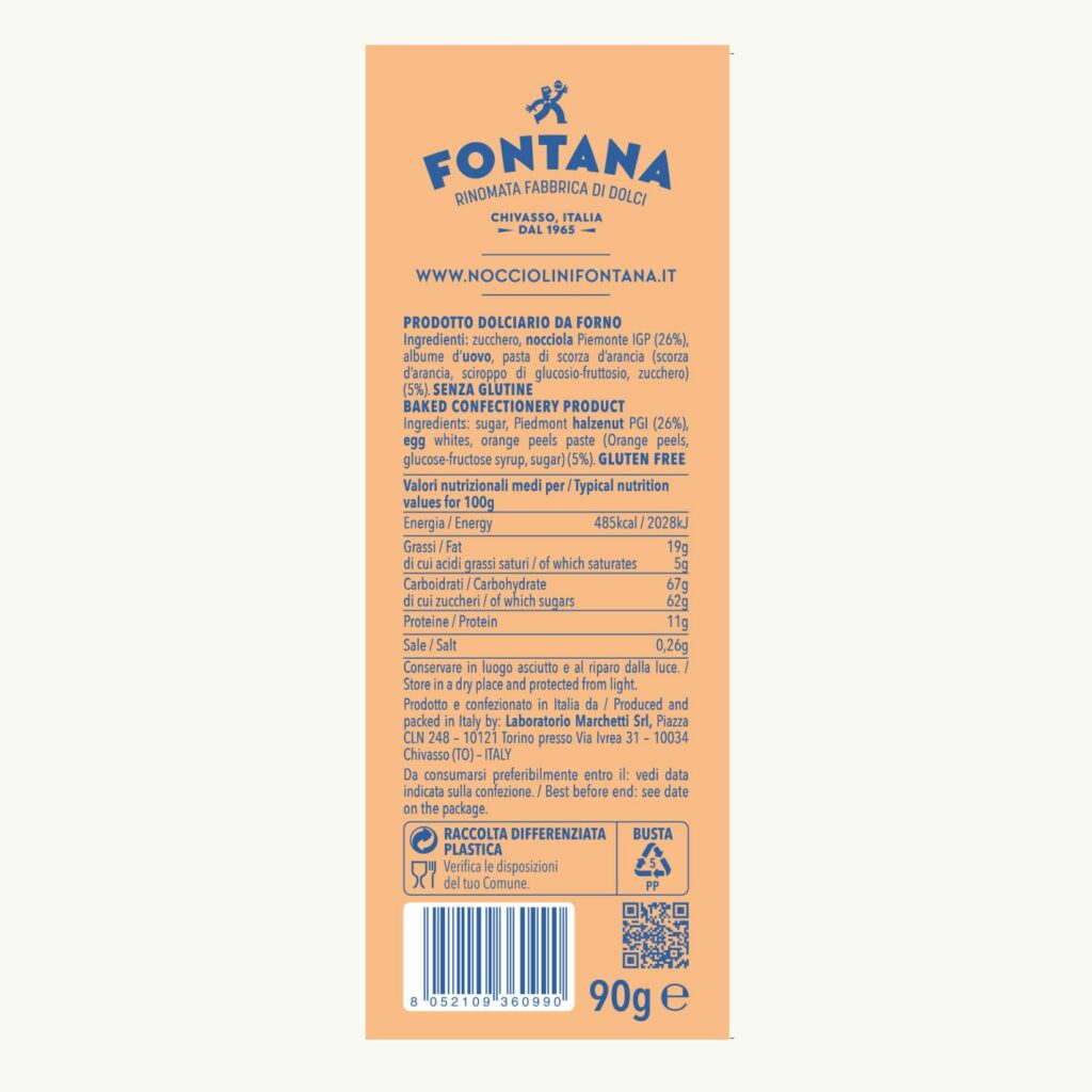 L’animo rustico e dolcissimo è lo stesso, ma ho voluto renderlo più rock and roll con un tono agrumato. Sono il rimedio perfetto per le giornate in salita. I nocciolini sono una specialità della tradizione chivassese: tondi e croccanti, sono gentili e preziosi come la Nocciola Piemonte IGP, che interpretano magistralmente da quasi due secoli.