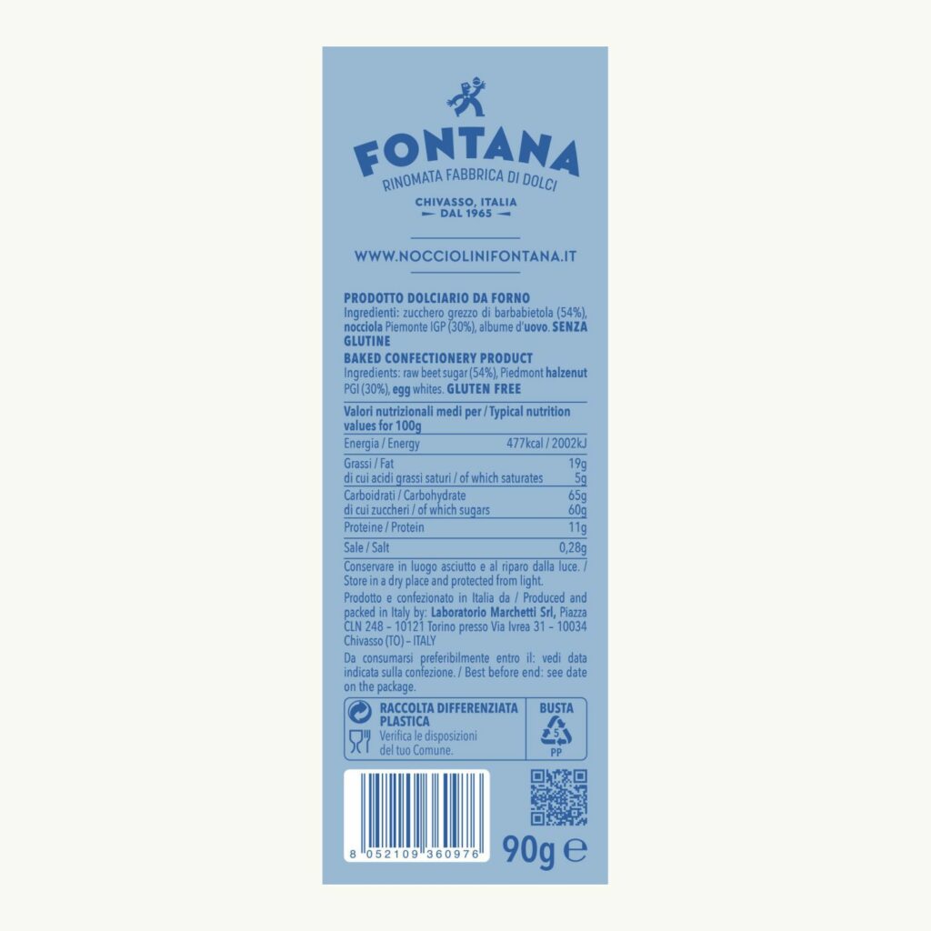 “Gnam crunch crunch” per questi nocciolini tradizionali con zucchero grezzo di barbabietola, cento per cento italiano. I nocciolini sono una specialità della tradizione chivassese: tondi e croccanti, sono gentili e preziosi come la NocciolaPiemonte IGP, che interpretano magistralmente da quasi due secoli.
