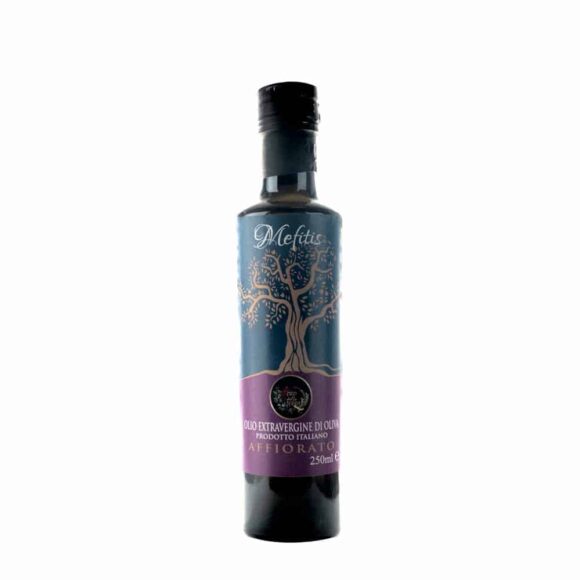 -Olio extravergine di oliva Mefitis. Olio extravergine di oliva ottenuto con l’antica tecnica per affioramento. Una qualità eccezionale! un fruttato medio alto e un buon equilibrio tra l’iniziale piccantezza e il finale delicato. Olio lucano I.G.P. Bottiglia da 250 ml. Gli oli dell’Azienda Agricola Saluzzi sono prodotti con olio extravergine di oliva di eccezionale qualità, un’azienda di famiglia tramandata di padre in figlio, ecco come nasce l’Olio extravergine di oliva Mefitis. Il nome di questo olio extravergine di eccezionale qualità è un omaggio alla dea Mefitis. Una dea italica protettrice delle sorgenti e della fertilità. Si tratta di un olio di assoluta eccellenza perché prodotto secondo una tecnica antica, detta affioramento. Perché consiste nel raccogliere a mano la piccolissima percentuale di olio (circa il 4%) che affiora spontaneamente sulla pasta delle olive. Dopo la raccolta per affioramento l’olio viene leggermente filtrato tramite un panno di cotone e infine imbottigliato. Il risultato è un olio corposo, in perfetta armonia tra profumo e gusto, reso ancor più prezioso dalla taratura molto limitata, proprio in virtù del particolare processo di produzione. Olivicoltori di tradizione che portano avanti metodi tradizionali e naturali di lavorazione. Per ottenere prodotti con un alto profilo organolettico. Le olive vengono infatti frante con macine in pietra. Per preservarne tutte le caratteristiche organolettiche e le sostanze preziose dalle indiscusse proprietà benefiche per la nostra salute, quali polifenoli, acidi grassi monoinsaturi e vitamina E.