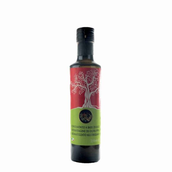 -Olio EVO all’origano. Condimento a base di olio extravergine di oliva (99%) aromatizzato all’origano, provalo per preparare un gustoso spaghetto alla marinara con l‘olio aromatizzato, aglio, sugo di pomodoro, sale e pepe! Olio lucano I.G.P. Bottiglia da 250 ml. Gli oli aromatizzati dell’Azienda Agricola Saluzzi sono prodotti con olio extravergine di oliva di eccezionale qualità, un’azienda di famiglia tramandata di padre in figlio, ecco come nasce l’Olio EVO all’origano. Olivicoltori di tradizione che portano avanti metodi tradizionali e naturali di lavorazione per ottenere prodotti con un alto profilo organolettico, le olive vengono infatti frante con macine in pietra. Per preservarne tutte le caratteristiche organolettiche e le sostanze preziose dalle indiscusse proprietà benefiche per la nostra salute, quali polifenoli, acidi grassi monoinsaturi e vitamina E. L’olio extra vergine di Oliva all’origano ha come caratteristica un olio già di per sé aromatico al quale si è pensato di aggiungere vari aromi naturali selezionati dal proprio territorio, siamo nelle colline incontaminate della Basilicata ricche di essenze e di erbe, il tutto contribuisce a renderlo un condimento ancor più speciale e versatile perfetto per dare quel tocco inconfondibile alle tue ricette. L’Olio extra vergine di oliva aromatizzato all’origano è perfetto come condimento per il pesce, per le verdure, le patate e le carni, per preparare una vinaigrette o una salsa tzatziki speciale.