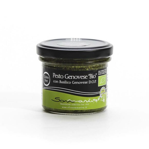 Dalla tradizione agricola Sommariva, l’eccellenza del prodotto tipico ligure. Il pesto BIO è preparato secondo la ricetta tradizionale genovese utilizzando solo con ingredienti biologici certificati di altissima qualità. Il basilico cresciuto nelle nostre campagne e utilizzato è basilico genovese DOP che vanta anche la certificazione BIO. Tutta la genuinità di un prodotto unico nel suo genere, così buono, gustoso e delicato da poter essere usato sia sui primi della cucina ligure, sia gustato direttamente su crostini o per dare un tocco di sapore in più ad un polpo in insalata.