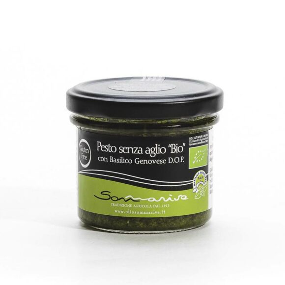 Dalla tradizione agricola Sommariva, l’eccellenza del prodotto tipico ligure. Il Pesto Senza Aglio BIO è preparato utilizzando solo con ingredienti biologici certificati di altissima qualità. Il basilico cresciuto nelle nostre campagne e utilizzato è basilico genovese DOP che vanta anche la certificazione BIO. Tutta la genuinità di un prodotto unico nel suo genere, così buono, gustoso e delicato da poter essere usato sia sui primi della cucina ligure, sia gustato direttamente su crostini o per dare un tocco di sapore in più ad un polpo in insalata.