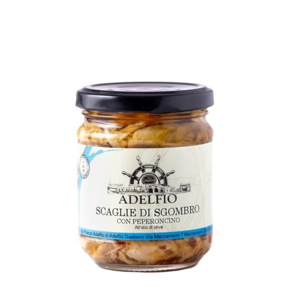 Le Scaglie di Sgombro con Peperoncino all’olio d’oliva in vaso Adelfio offrono una combinazione di sapori intensi e aromatici, con sgombro fresco arricchito dal piccante peperoncino e conservato in olio d’oliva extra vergine. Perfette per antipasti, insalate o piatti mediterranei dal gusto deciso. Le Scaglie di Sgombro con Peperoncino all’olio d’oliva in vaso Adelfio sono una prelibatezza dal gusto intenso e deciso che unisce la freschezza del pesce sgombro con il calore piccante del peperoncino, il tutto immerso in olio d’oliva extra vergine di alta qualità. Lo sgombro, un pesce azzurro ricco di sapore e proprietà nutritive, viene lavorato con cura per ottenere scaglie morbide e delicate, che vengono poi arricchite con un tocco di peperoncino, per una nota piccante che esalta il sapore naturale del pesce. Questa preparazione è ideale per chi ama i piatti dal sapore deciso e aromatico. L’olio d’oliva, utilizzato con maestria, completa il tutto, donando una morbidezza che bilancia perfettamente la piccantezza del peperoncino e il sapore ricco dello sgombro. Le Scaglie di Sgombro con Peperoncino all’olio d’oliva sono perfette per essere servite come antipasto, accompagnare insalate fresche, oppure come condimento per piatti di pasta o bruschette, aggiungendo una nota di sapore inconfondibile e mediterraneo. Adelfio, con il suo impegno nella selezione e lavorazione dei migliori ingredienti, offre un prodotto che unisce tradizione e innovazione, ideale per chi cerca un’esperienza gastronomica autentica e dal carattere unico.