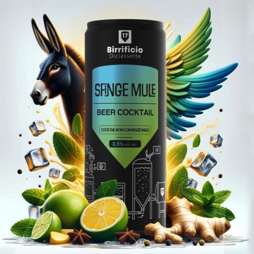 Sfinge Mule è una reinterpretazione audace e rinfrescante del classico Moscow Mule, ma con un tocco di leggerezza che può solo venire dalla nostra blanche, la Sfinge. Questo cocktail è un inno all’elevazione dello spirito, è il Mule che fa volare, portando ogni degustatore in un viaggio tra le nuvole con la sua allegoria vivace e alata. Il carattere dello zenzero trova il suo inaspettato equilibrio in un mix di ingredienti che è allo stesso tempo familiare e straordinariamente nuovo. Alza il bicchiere e preparati a volare, con un brindisi che porta con sé la magia di antiche leggende e il brivido di nuove scoperte. SERVIRE CON: Ghiaccio e una fettina di lime. INGREDIENTI: Acqua, ginger beer, malto d’orzo e di frumento, frumento, luppolo, spezie aromatiche (coriandolo, pepe bianco e buccia d’arancia) succo di lime, lievito. Alc. 3,5% Vol. | 33cl. Il Mule che fa volare.