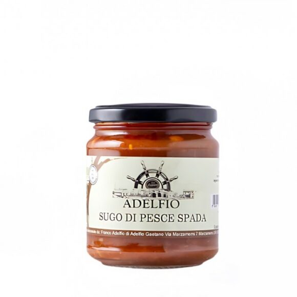 Ottimo per condire la pasta o come accompagnamento per secondi piatti. Il Sugo di Pesce Spada Adelfio è preparato con pesce spada fresco, pomodoro, cipolla e un tocco di vino bianco. L’aroma del pesce spada si sposa perfettamente con il pomodoro, creando un sugo ricco e saporito. Questo condimento è perfetto per pasta lunga come spaghetti, ma si presta anche per risotti o piatti a base di pesce. Una reinterpretazione fresca e gustosa della cucina siciliana. Essendo pronto, basta semplicemente riscaldarlo e versarlo sopra la pasta precedentemente scolata, con aggiunta consigliata di pangrattato abbrustolito. Confezionato in vasetto da 300 gr.