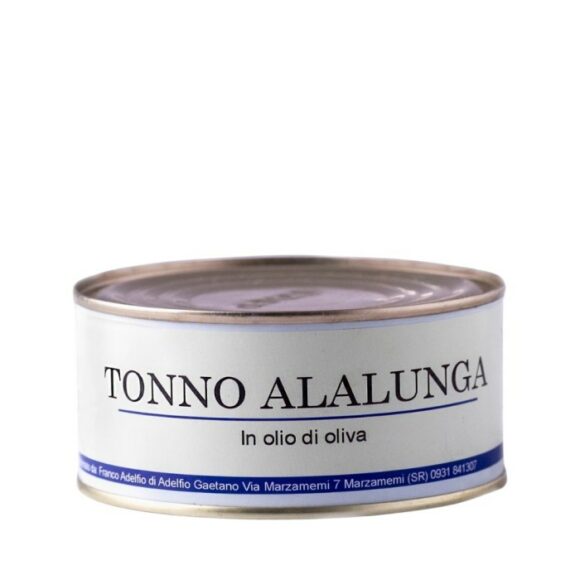 Il tonno Alalunga Adelfio, selezionato e lavorato artigianalmente secondo le tradizioni della tonnara di Marzamemi, è conservato in olio d’oliva per un sapore autentico. Perfetto per antipasti o piatti freddi. Confezionato in latta da 300 gr.