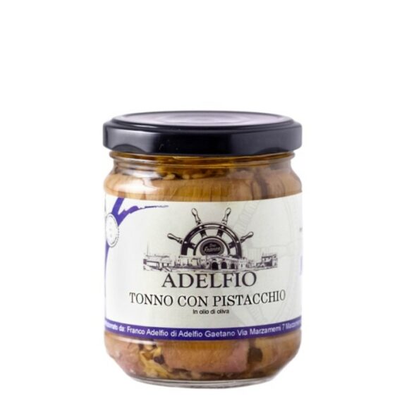 Il Tonno con pistacchio in olio d’oliva Adelfio è una delizia esclusiva che combina la delicatezza del tonno con il gusto ricco e aromatico del pistacchio siciliano. Ogni pezzo di tonno è immerso in olio d’oliva di alta qualità, che esalta la morbidezza e il sapore intenso del pesce. Il tocco croccante del pistacchio rende questo prodotto perfetto per chi ama sperimentare sapori nuovi, senza rinunciare alla qualità artigianale. Ideale come antipasto raffinato o per arricchire un’insalata, questo tonno è un vero tesoro del Mediterraneo, confezionato in vaso da 200 gr per preservare tutta la freschezza e la bontà degli ingredienti.
