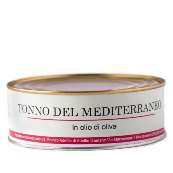 Il Tonno del Mediterraneo in olio d’oliva in latta Adelfio è una specialità artigianale, preparata seguendo le antiche tradizioni della tonnara di Marzamemi. Tonno Alletterato, conservato in olio d’oliva di alta qualità per preservare freschezza e sapore. Confezionato in latta da 160g/300g/850g.