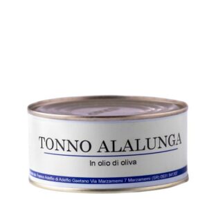 Il Tonno del Mediterraneo in olio d’oliva in latta Adelfio è una specialità artigianale, preparata seguendo le antiche tradizioni della tonnara di Marzamemi. Tonno Alletterato, conservato in olio d’oliva di alta qualità per preservare freschezza e sapore. Confezionato in latta da 160g/300g/850g.