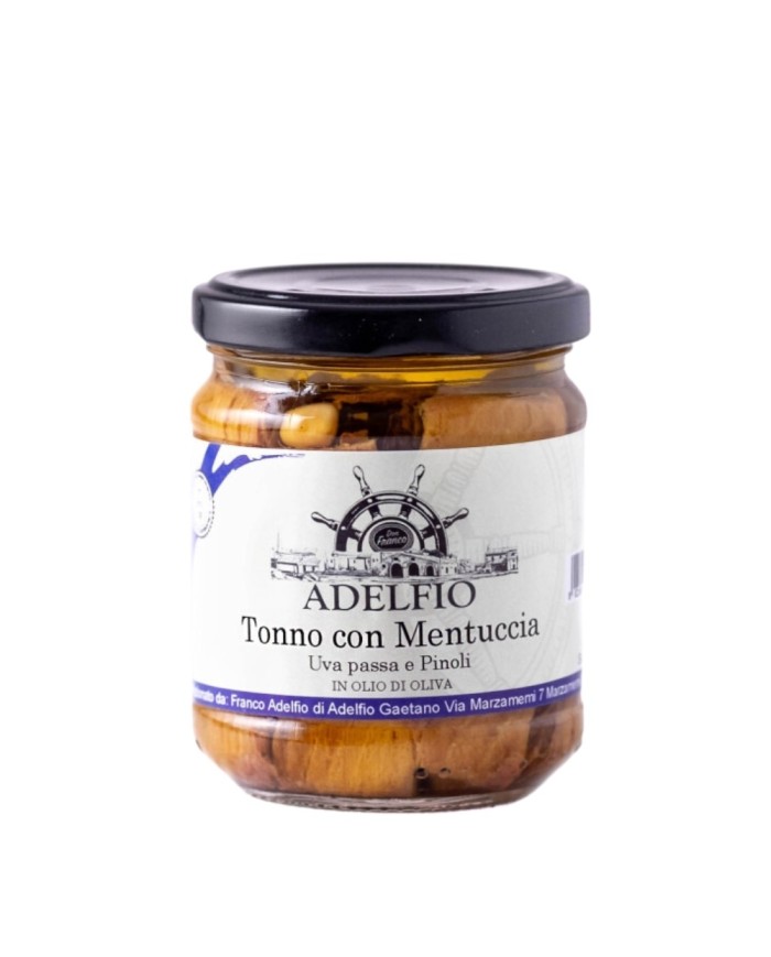 Tonno con mentuccia, uva passa e pinoli in vaso – Adelfio
