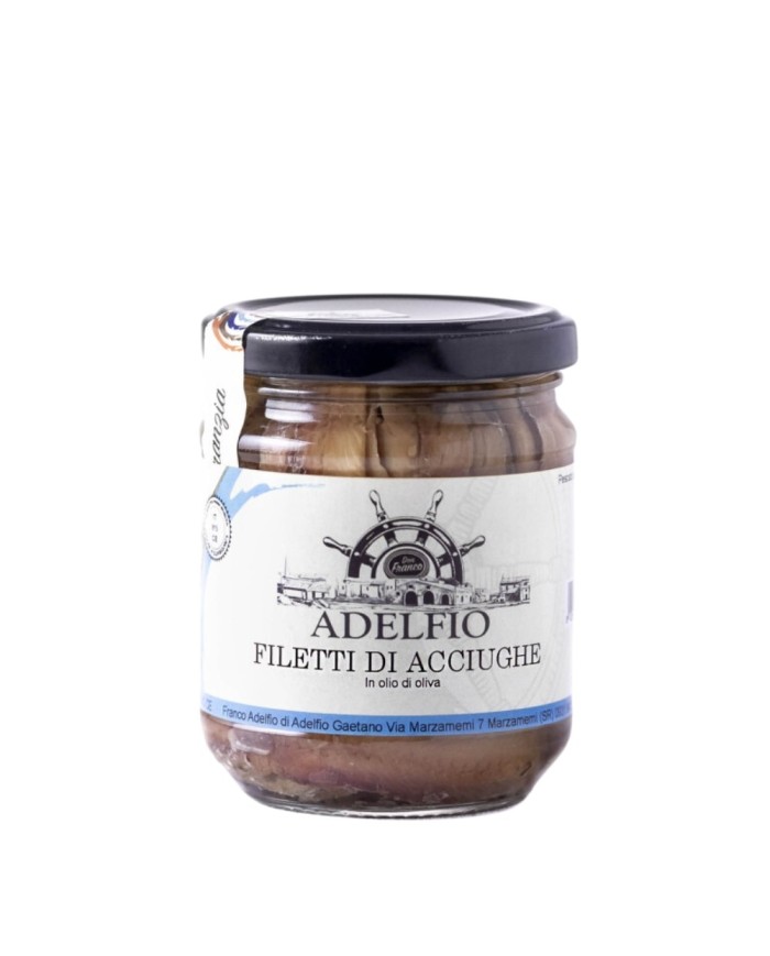 Filetti di acciughe in olio d’oliva in vaso – Adelfio