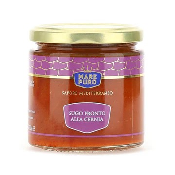Il Sugo pronto alla cernia porta sulla tavola il sapore naturale della Sicilia. Eccezionale sopra il pane abbrustolito con l’aggiunta di un filo d’olio, per arricchire il condimento di primi piatti di pasta o per preparare saporite salse di accompagnamento a carne e pesce. LA QUALITA’ IN TAVOLA: Gli ingredienti sono tutti scelti e lavorati con cura per garantirti un prodotto sano ed eccellente. una volta aperto il vasetto conservarlo in frigo e consumarlo entro 3 giorni. INFORMAZIONI AGGIUNTIVE: Sugo alla cernia. INGREDIENTI: Salsa di pomodoro (79%), cernia (9%), vino bianco, triplo concentrato di pomodoro, cipolla, capperi, peperoncino, olio d’oliva, uva sultanina, sale marino siciliano, prezzemolo, zucchero. ALLERGENI : Solfiti (contenuti nel vino). Può contenere tracce di: pesce, sedano, frutta a guscio, molluschi, latte. CONFEZIONE: Vaso di vetro. CARATTERISTICHE ORGANOLETTICHE : Aspetto: classico sugo siciliano per pasta, Colore: tipico, Profumo: tipico, intenso di pesce, Gusto: tipico gusto mediterraneo. MODALITA’ DI CONSERVAZIONE: Conservare in un luogo fresco e asciutto. Dopo l’apertura conservare in frigo e consumare entro 3 giorni. VALORI NUTRIZIONALI (valori medi per 100g di prodotto): ENERGIA KJ/Kcal: 185/44, GRASSI: 0.7g, di cui acidi grassi saturi: 0.2g, CARBOIDRATI: 6.0g, di cui zuccheri: 6.0g. PROTEINE: 3.0g, SALE: 1.0g, FIBRE: 0.0g. CARATTERISTICHE MICROBIOLOGICHE (valori medi per 100g di prodotto): CMBT: <5×10(4)ufc/g, LIEVITI E MUFFE: <5×10(4)ufc/g, CLOSTRIDI ANAEROBI SOLFITO: Assenti, ESCHERICHIA COLI: <10(2)ufc/g, LISTERIA MONOCYTOGENES: Assente, SALMONELLA: Assente su 25g di prodotto. *